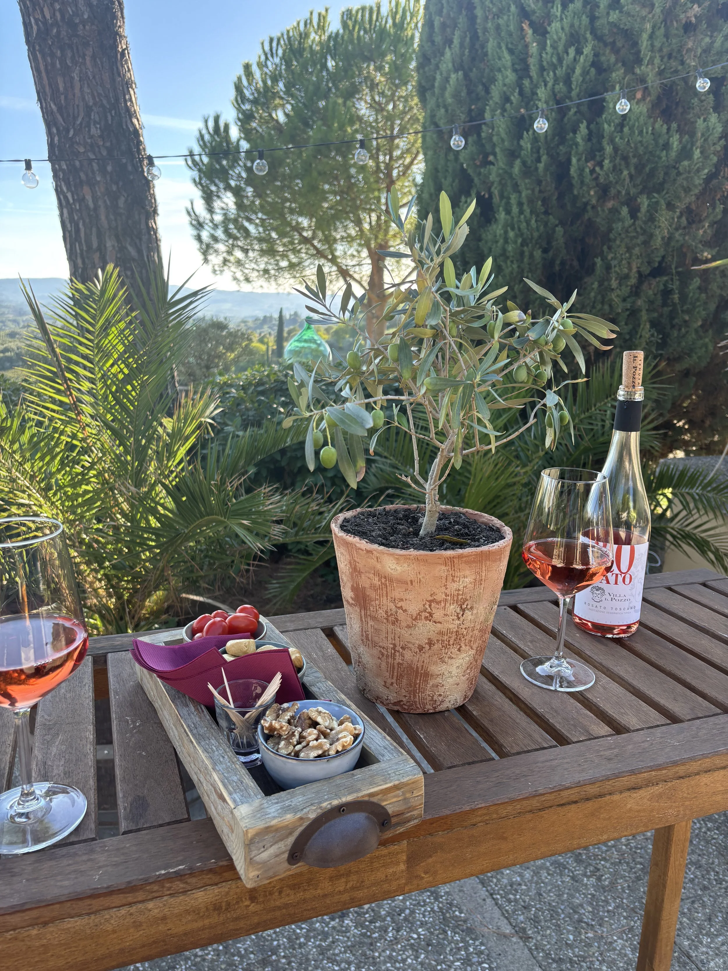 The next day’s agenda consists of vineyard hopping, undoubtably highlighted by Villa il Pozzo. “Fortune favors the brave,” Martin declares as we spontaneously pull into the gravel driveway without reservations. My hopes sink when we arrive to a tour group 40-strong in the middle of their tasting; Martin, undeterred, inquires whether we can enjoy two glasses. The gracious hosts could not be more accommodating, and within 15 minutes the group had departed and we had the estate to ourselves, replete with pergolas, a €12 bottle of rosé, antipasto, and a billion dollar view.
