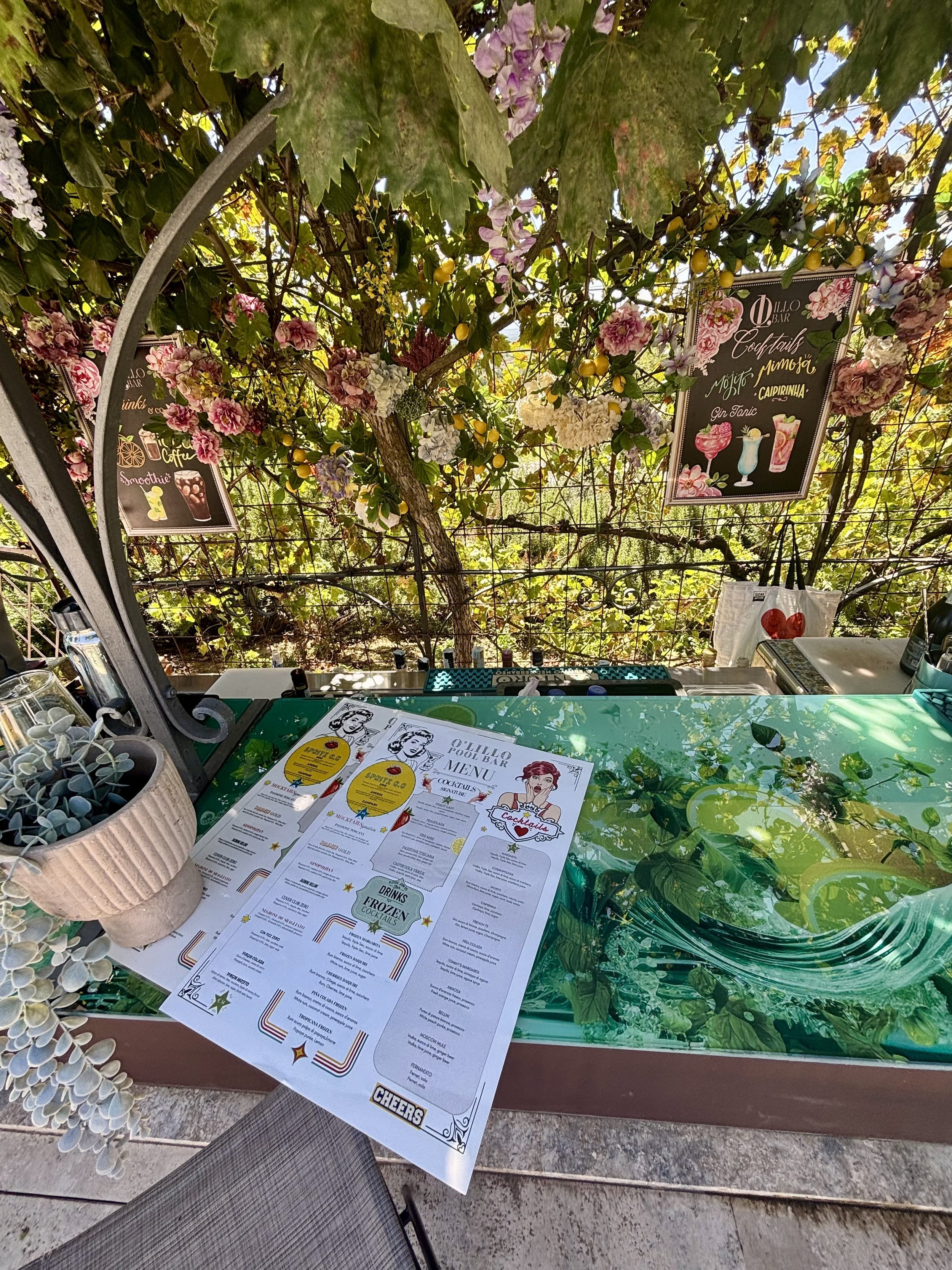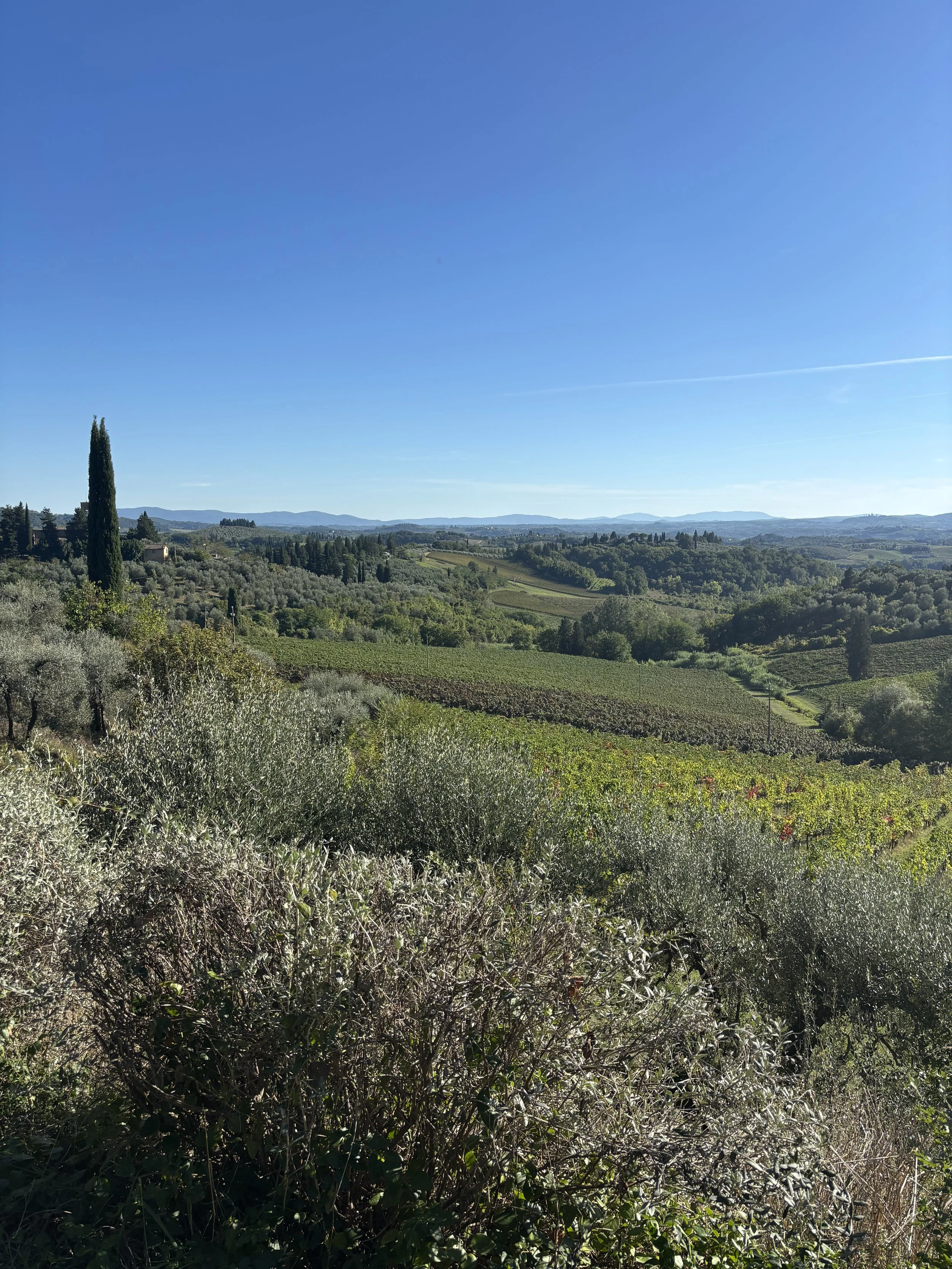 Next on the agenda…pool time. Pools, rather. There are three on property and I Goldilocks them all. Our room overlooks the bar-side pool - cocktails made-to-order under a grapevine pergola by Il Falconiere’s resident mixologist, who curated the menu herself. There’s also the spa pool, yours and yours alone with a reservation in advance. And a short stroll up fruit tree alley leads you to the hilltop pool overlooking the olive trees and vineyards.